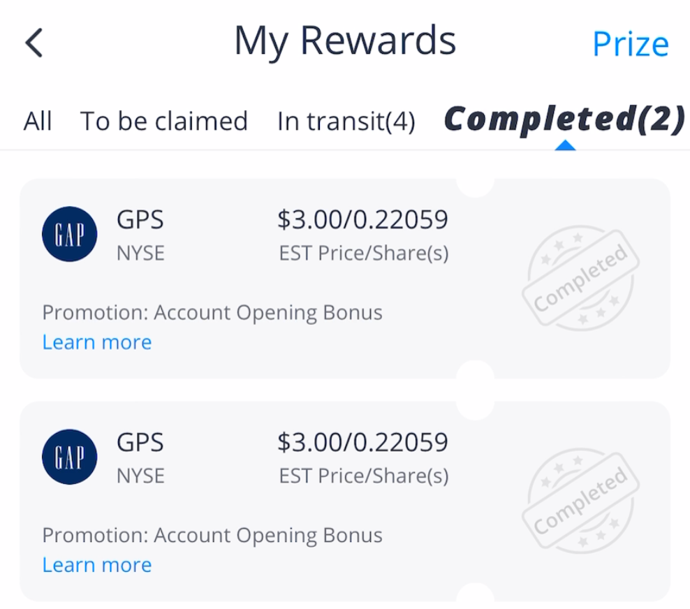 Account creation shares: 2 fractional shares of GAP $3 x 2.